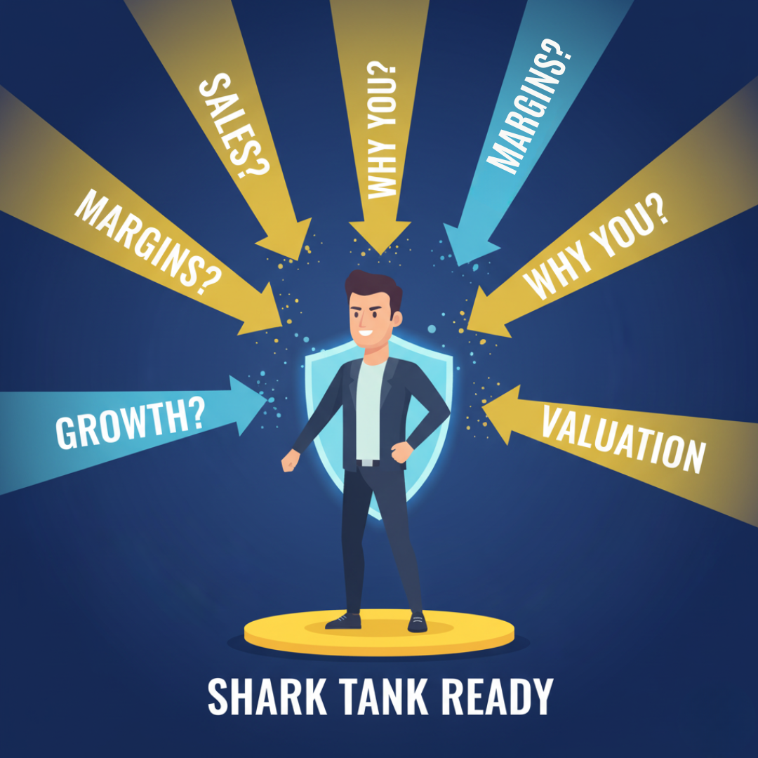Rapid-Fire Q&A Drills: We run you through intense mock Q&A sessions, preparing you for the 100+ tough questions that 'Sharks' love to ask about your sales, gross margins, supply chain, and customer acquisition costs.